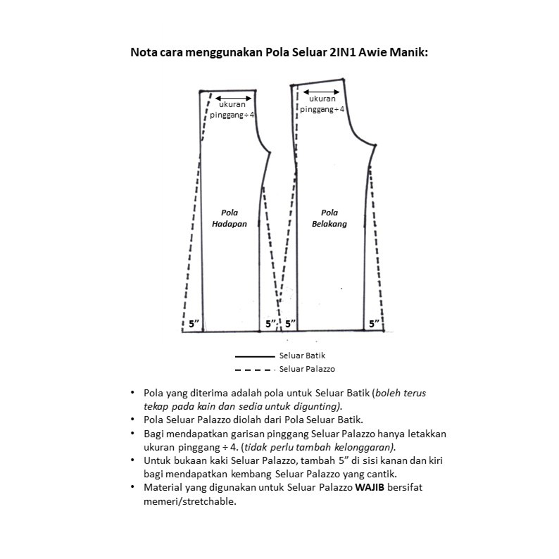 Cara mendraft pola & teknik kiraan dalam membuat seluar palazo. Pola menjahit seluar palazzo pola palazzo ini tidak mempunyai zip fly di hadapan, hanya menggunakan zip tepi sahaja tidak ada pocket === kelebihan pola ini . Selamat mencuba & selamat beramal. Hot item *pola seluar 2in1 awie manik size dewasa*size available: